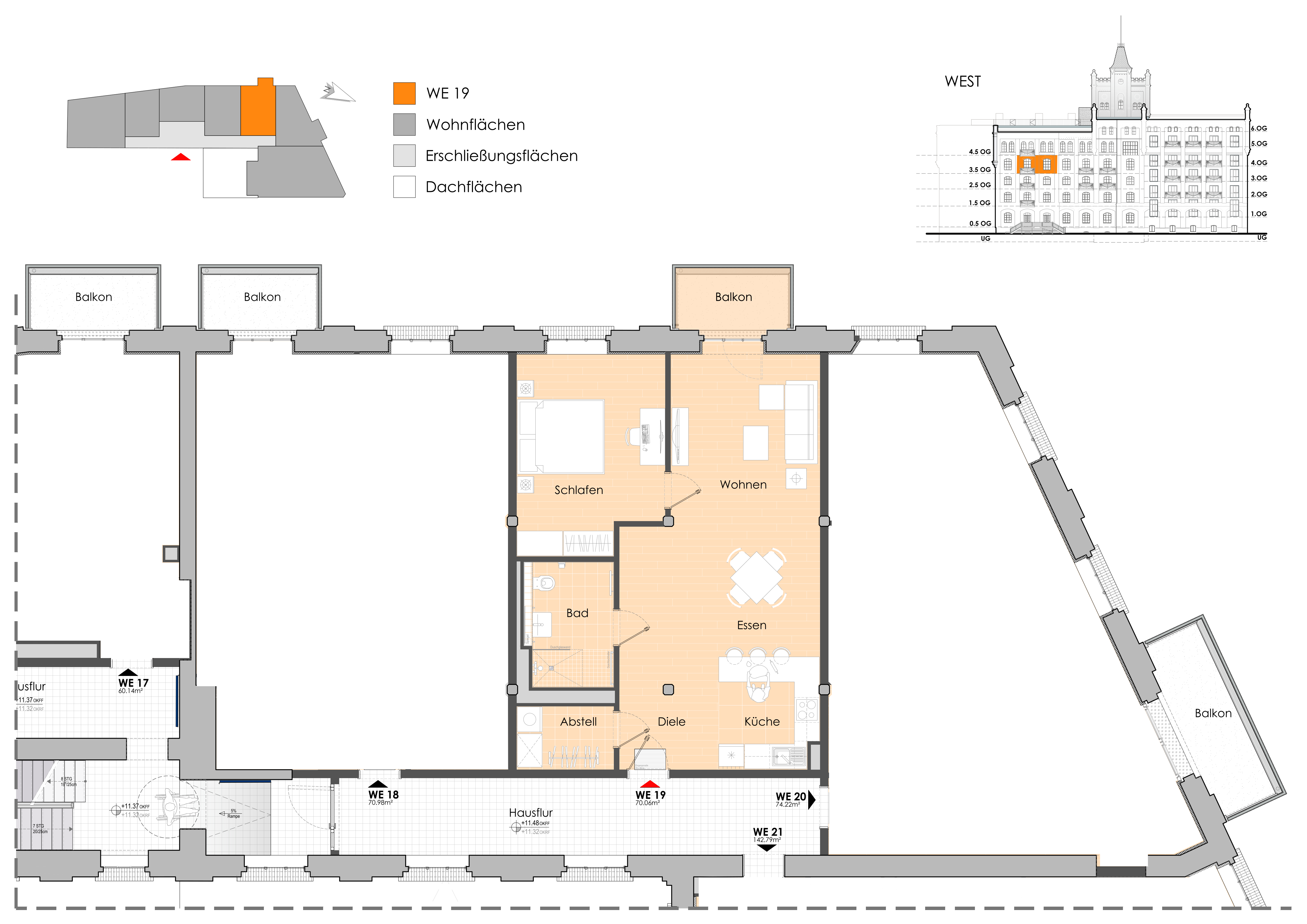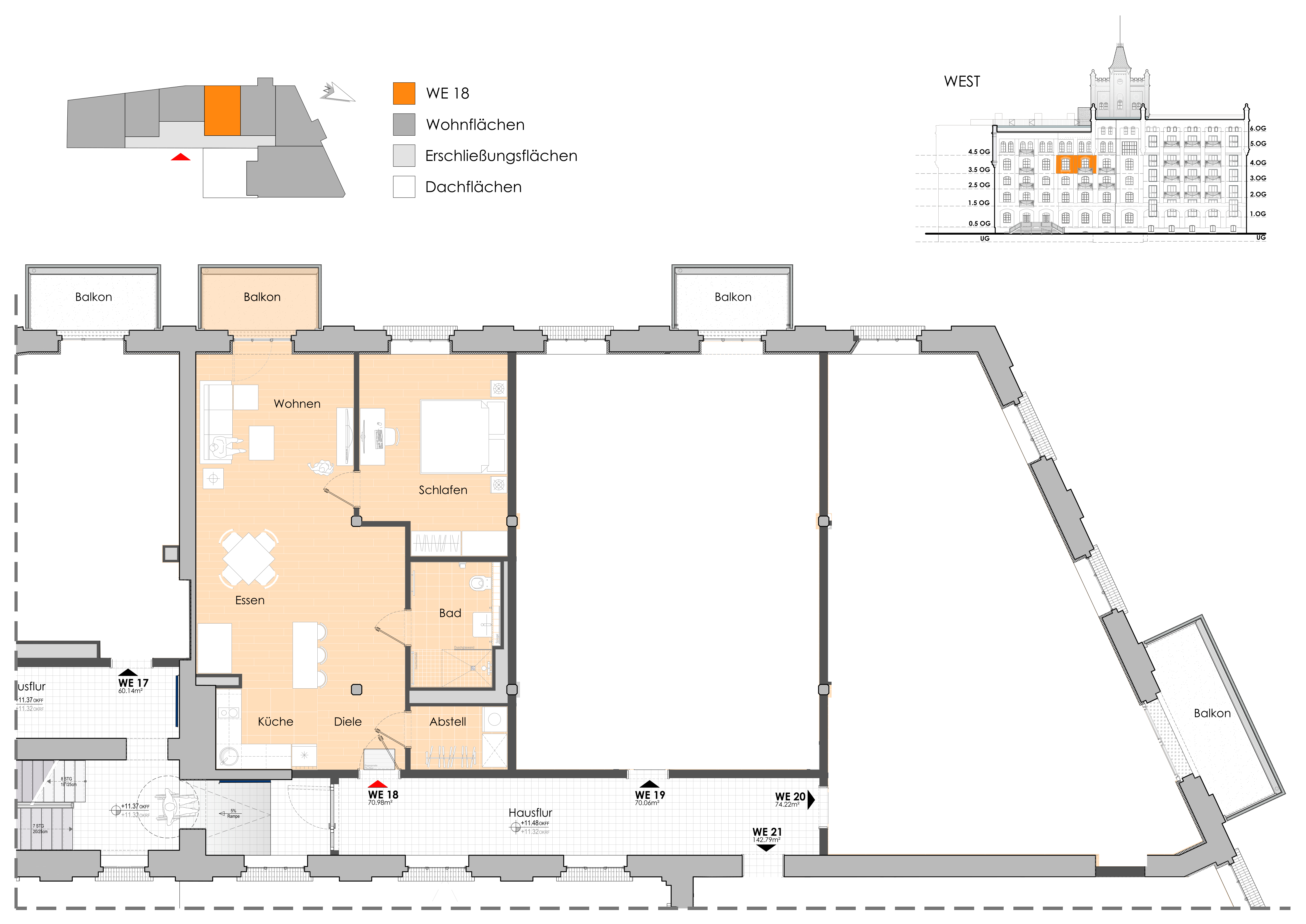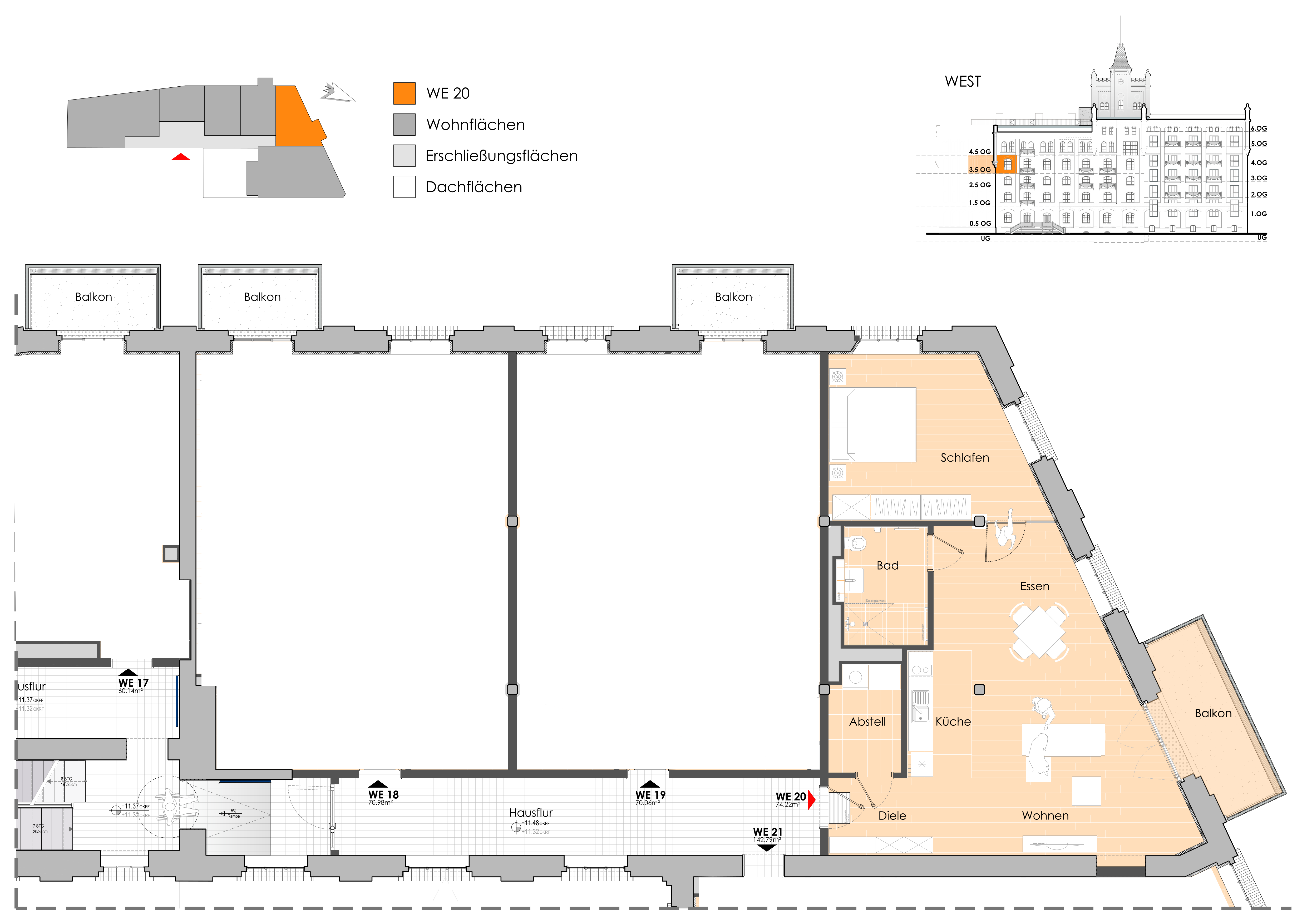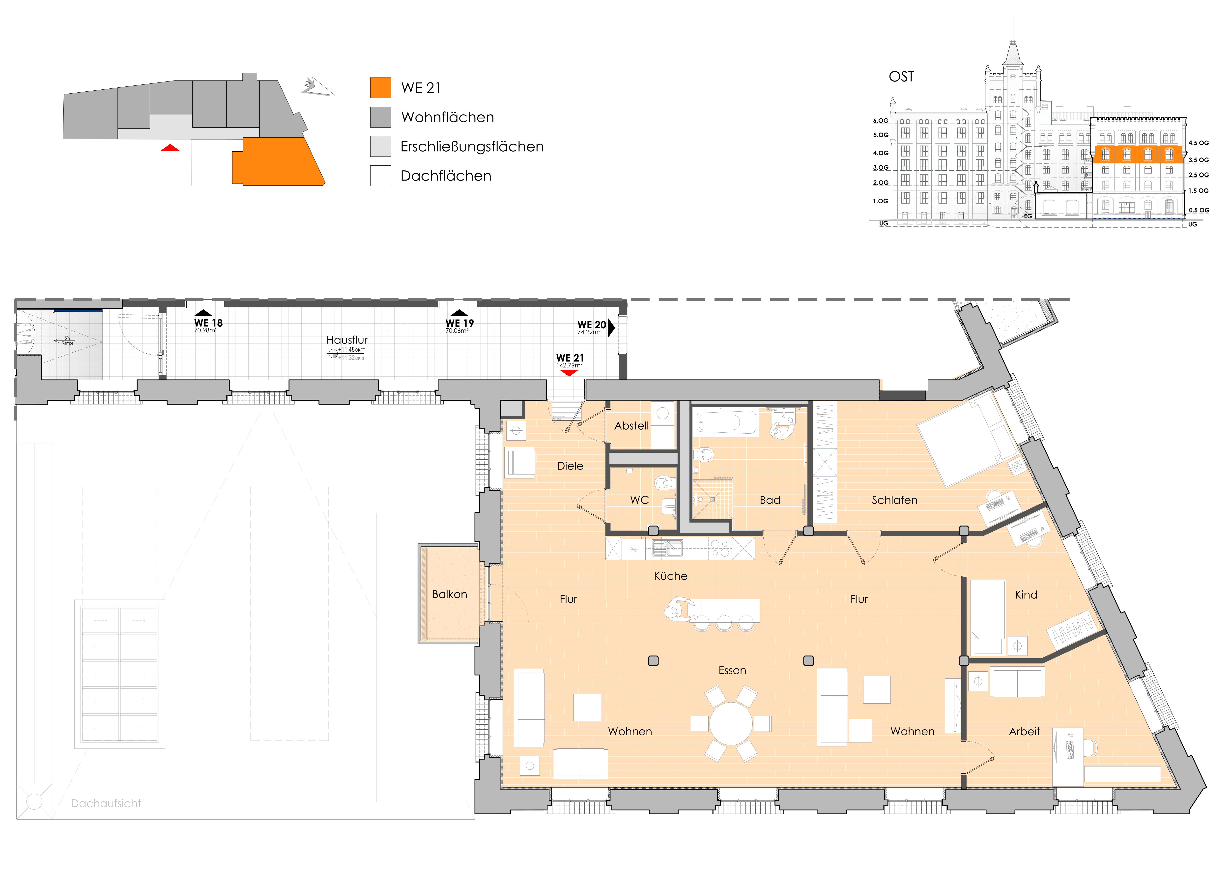 Das dritte Obergeschoss besteht aus insgesamt sieben Wohneinheiten. Auf dieser Seite finden Sie alle Informationen und Grundrisse zu den Wohnungen. Das Farbikschloss befindet sich momentan noch in der Umbauphase. Innenaufnahmen der Wohneinheiten sind daher noch nicht öffentlich verfügbar. Falls Sie Interesse an einer der Wohnungen haben, können Sie mit uns einen Besichtigungstermin vereinbaren, um sich vor Ort ein konkretes Bild der Räumlichkeiten zu machen.