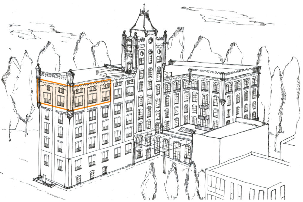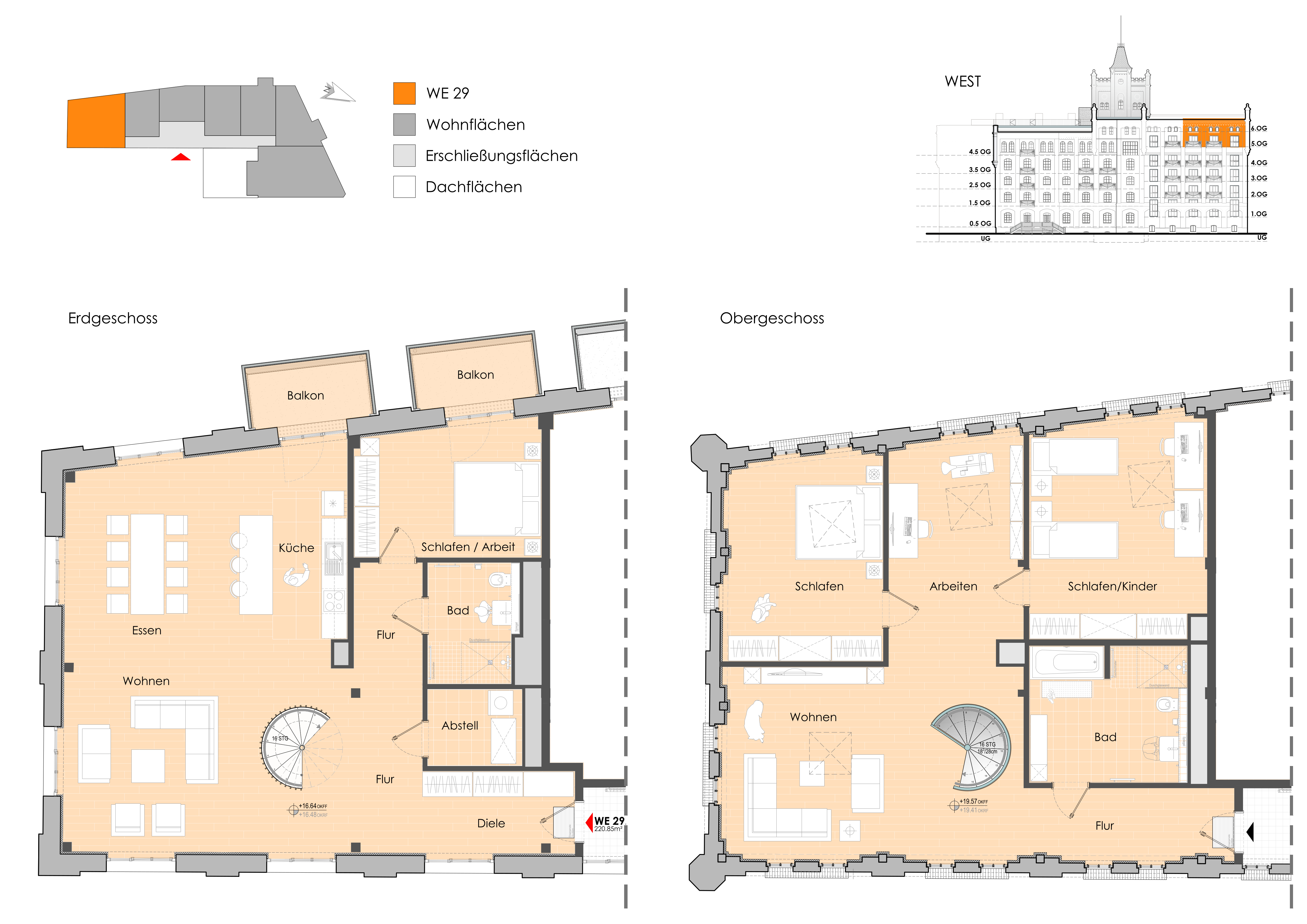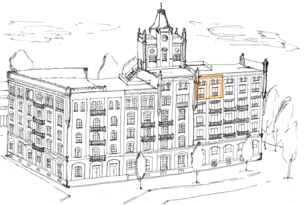 Das fünfte Obergeschoss besteht aus insgesamt zwei Wohneinheiten. Auf dieser Seite finden Sie alle Informationen und Grundrisse zu den Wohnungen. Das Farbikschloss befindet sich momentan noch in der Umbauphase. Innenaufnahmen der Wohneinheiten sind daher noch nicht öffentlich verfügbar. Falls Sie Interesse an einer der Wohnungen haben, können Sie mit uns einen Besichtigungstermin vereinbaren, um sich vor Ort ein konkretes Bild der Räumlichkeiten zu machen.